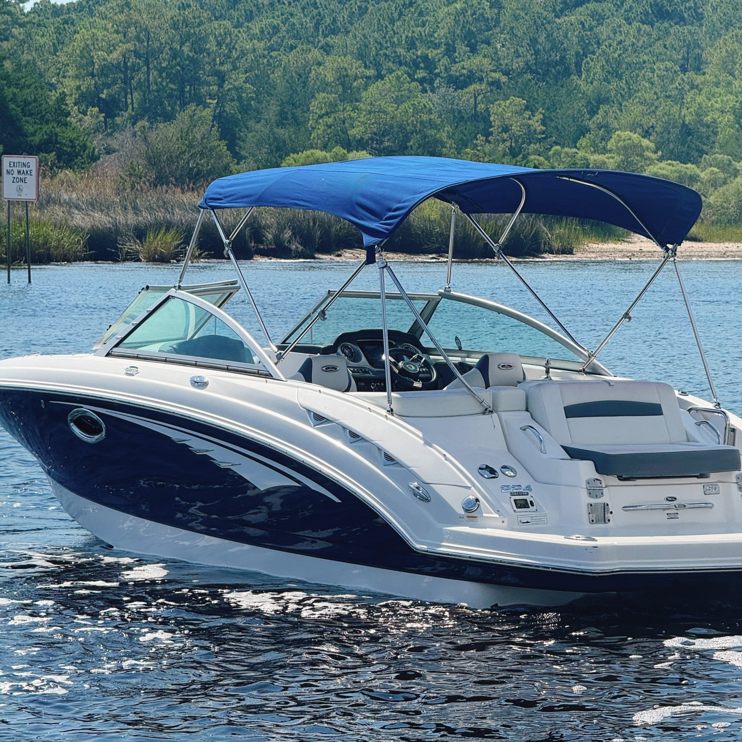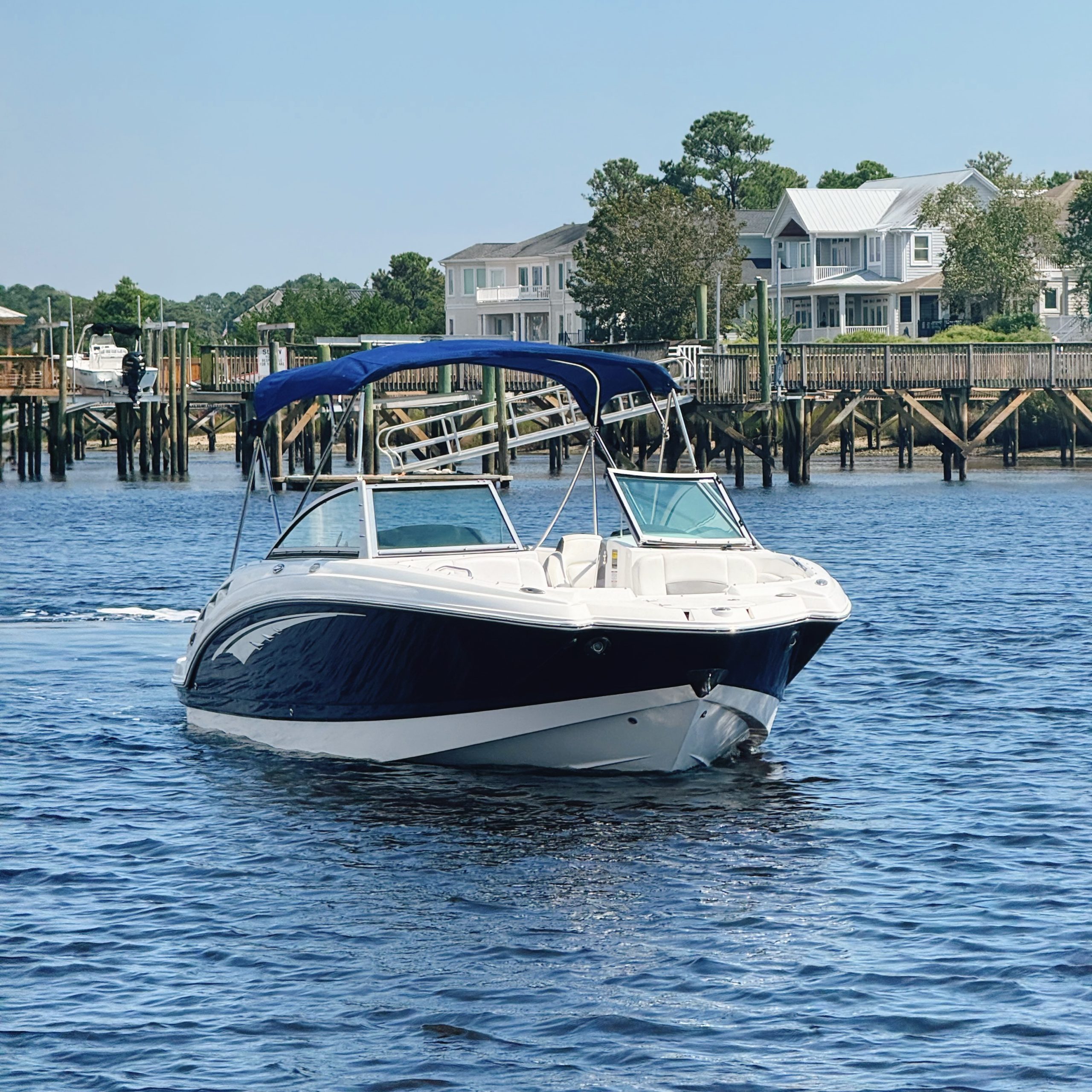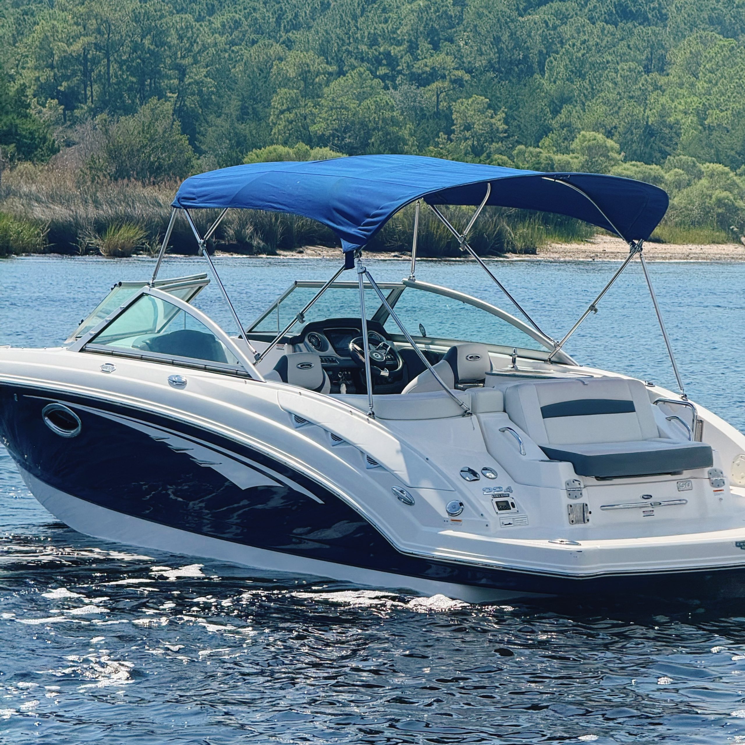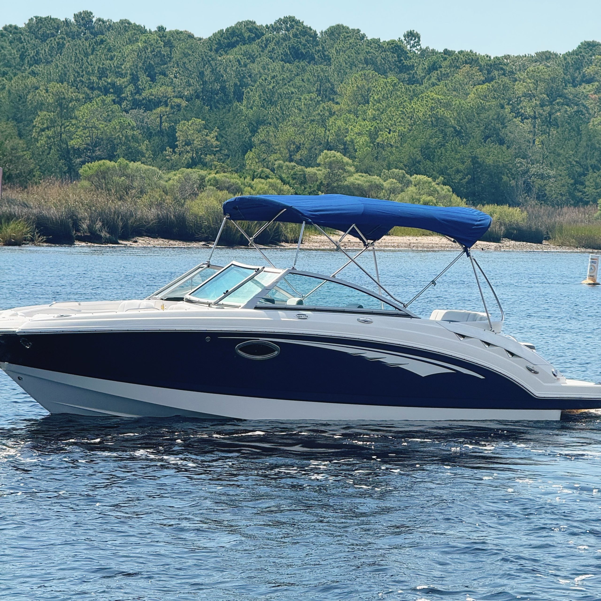 Powered by Volvo Penta v8 with only 138 hours. Motor serviced on 7/25/25. Trailer not included. Garmin gps/sonar on dash, Clarion stereo and Porta potty on board. Wet bar, On/off battery switch, Sun Pad Cooler on board, Boarding ladder ,Table n stand included. Full cockpit covers front and rear