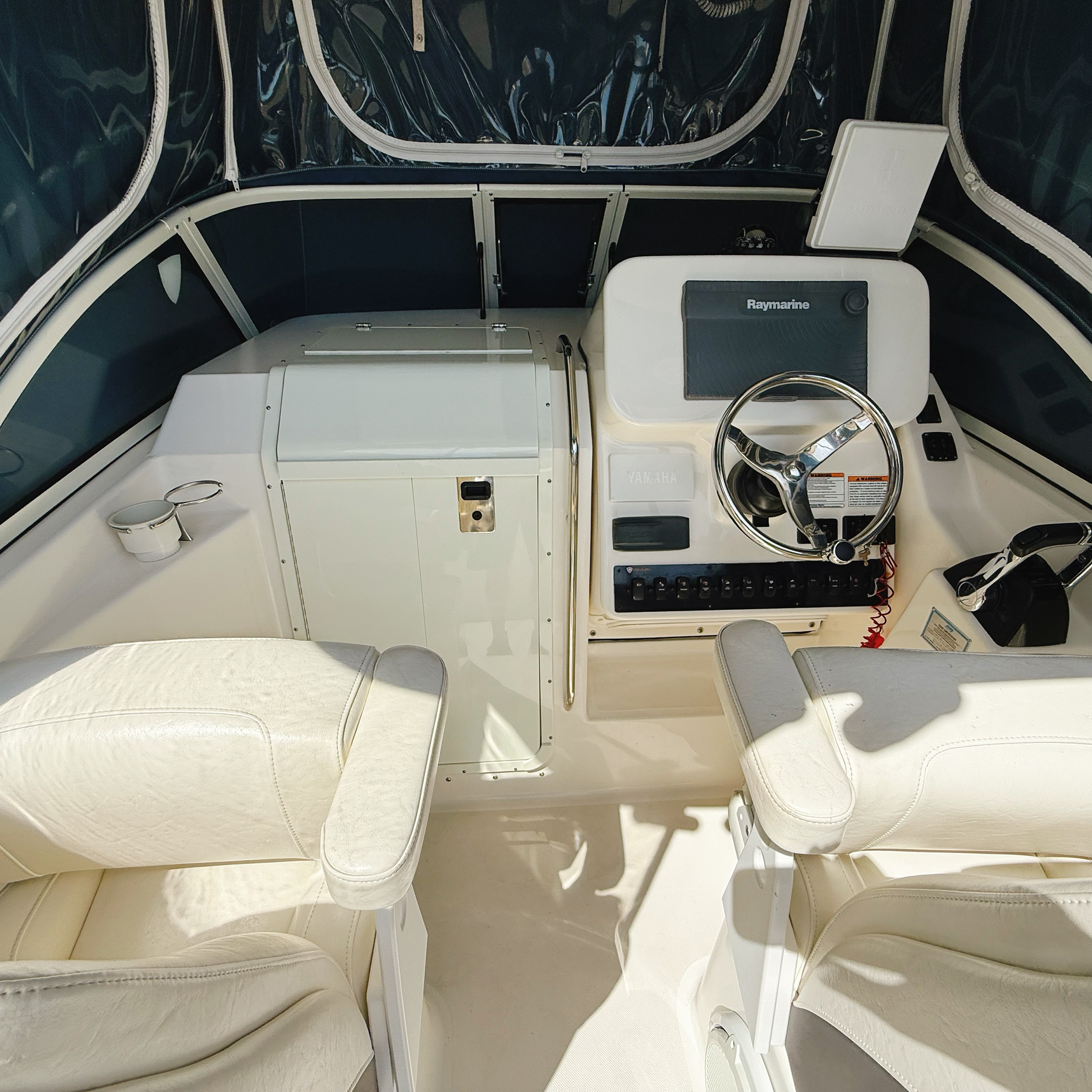 Turnkey and offshore ready, this 2016 Century 2600 Walkaround combines serious fishing capability with overnight comfort. With twin Yamaha four-strokes and just under 400 hours, this boat has been well cared for and is loaded with features.