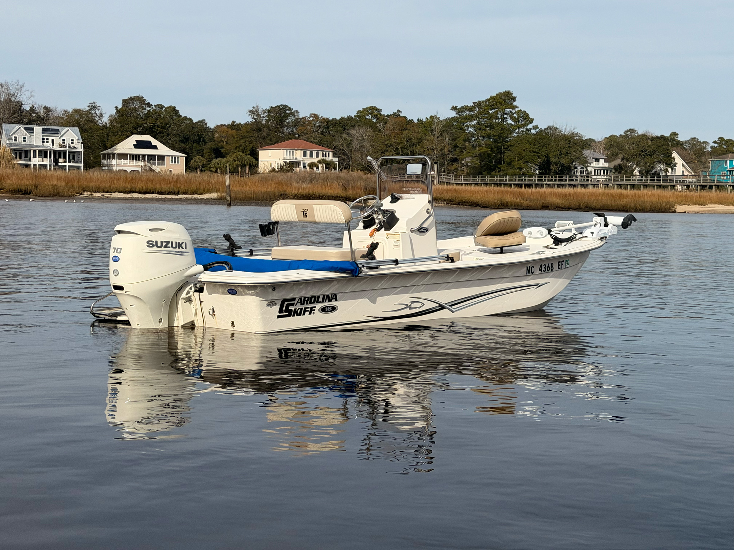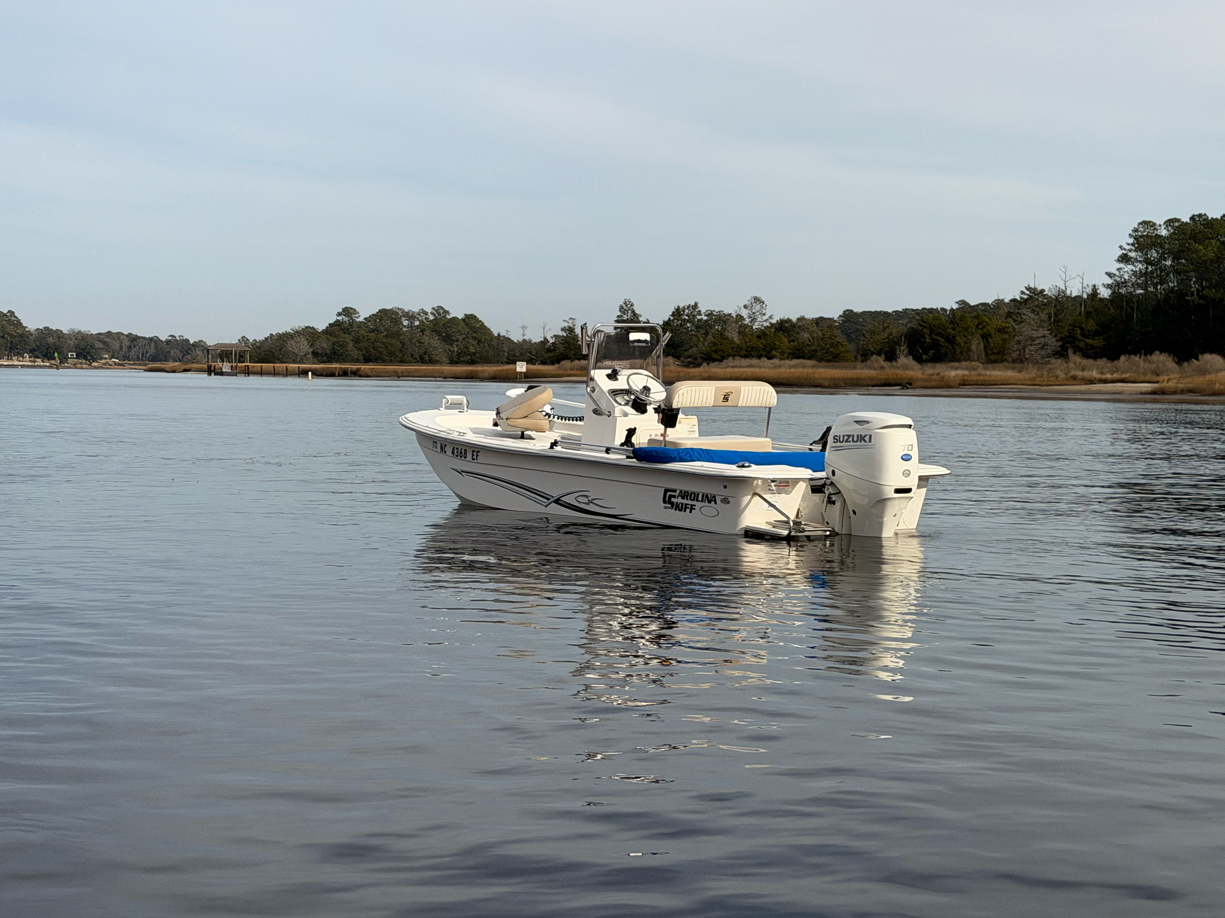 Clean, shallow-water skiff with low hours and trailer included. Easy to tow, easy to fish, and perfect for inshore, creeks, and flats.