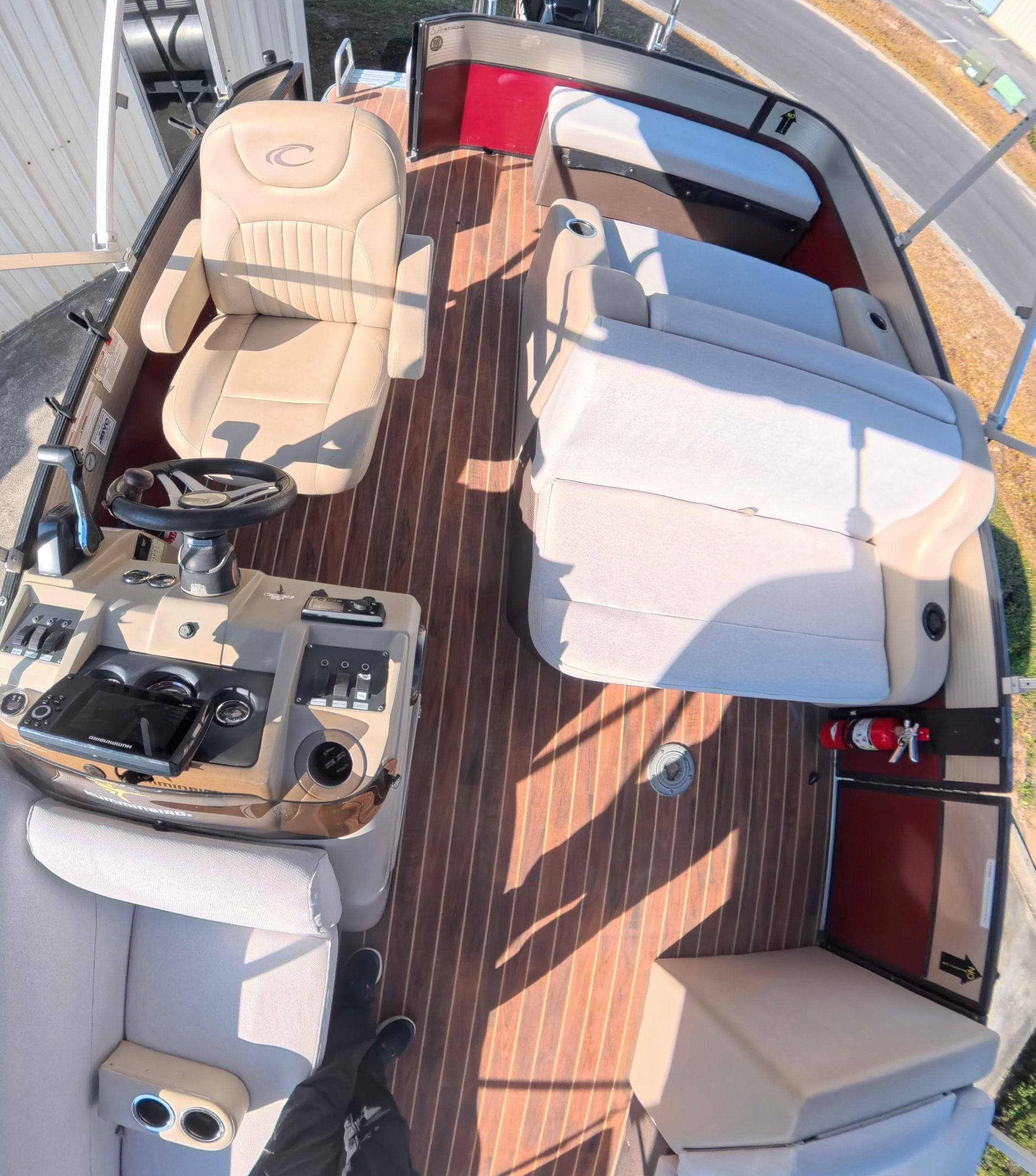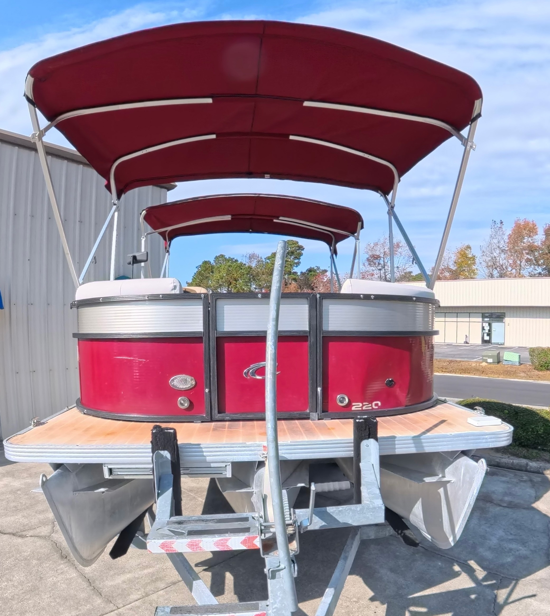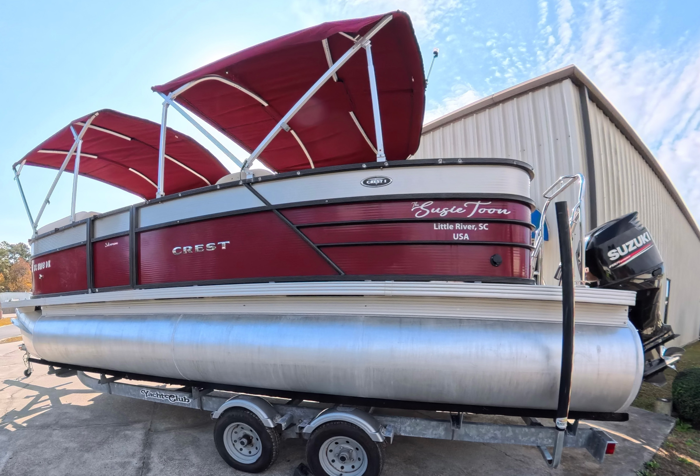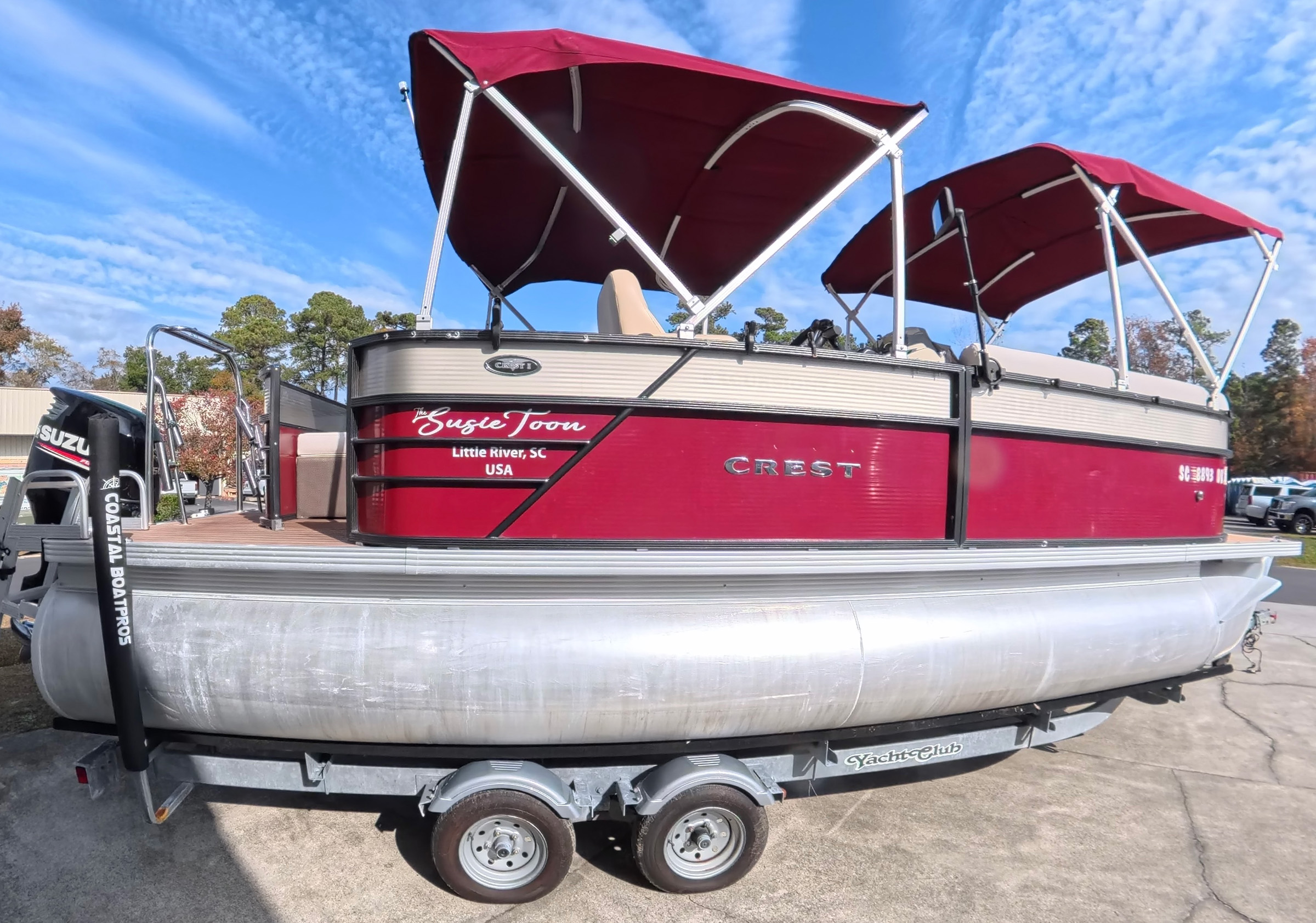 This 2018 Crest 220 Tritoon is in great condition and powered by a fuel-efficient Suzuki 150 Four Stroke. The boat runs excellent, upholstery is clean, and the deck layout offers tons of seating and storage. Perfect for cruising the Intracoastal, lakes, and family fun days on the water.