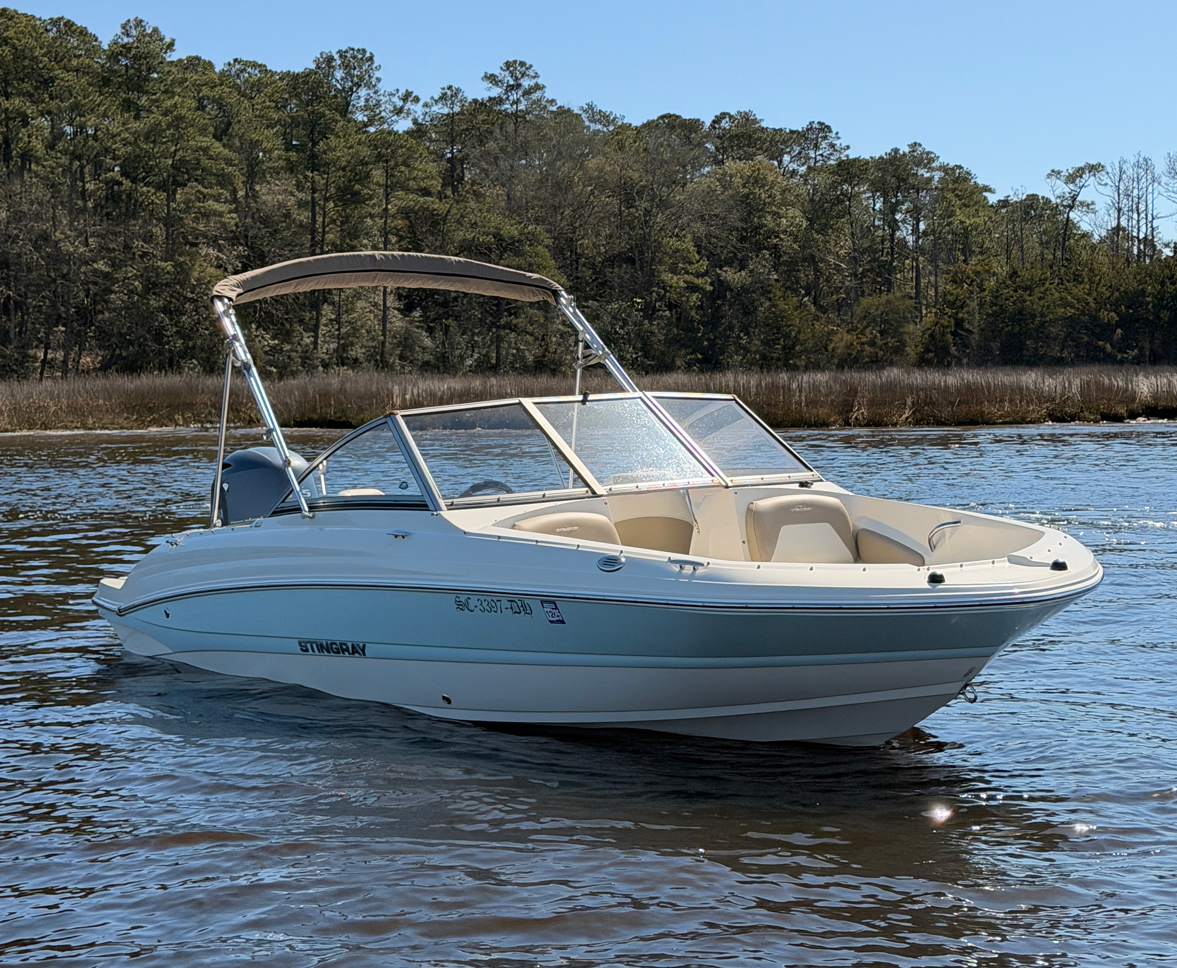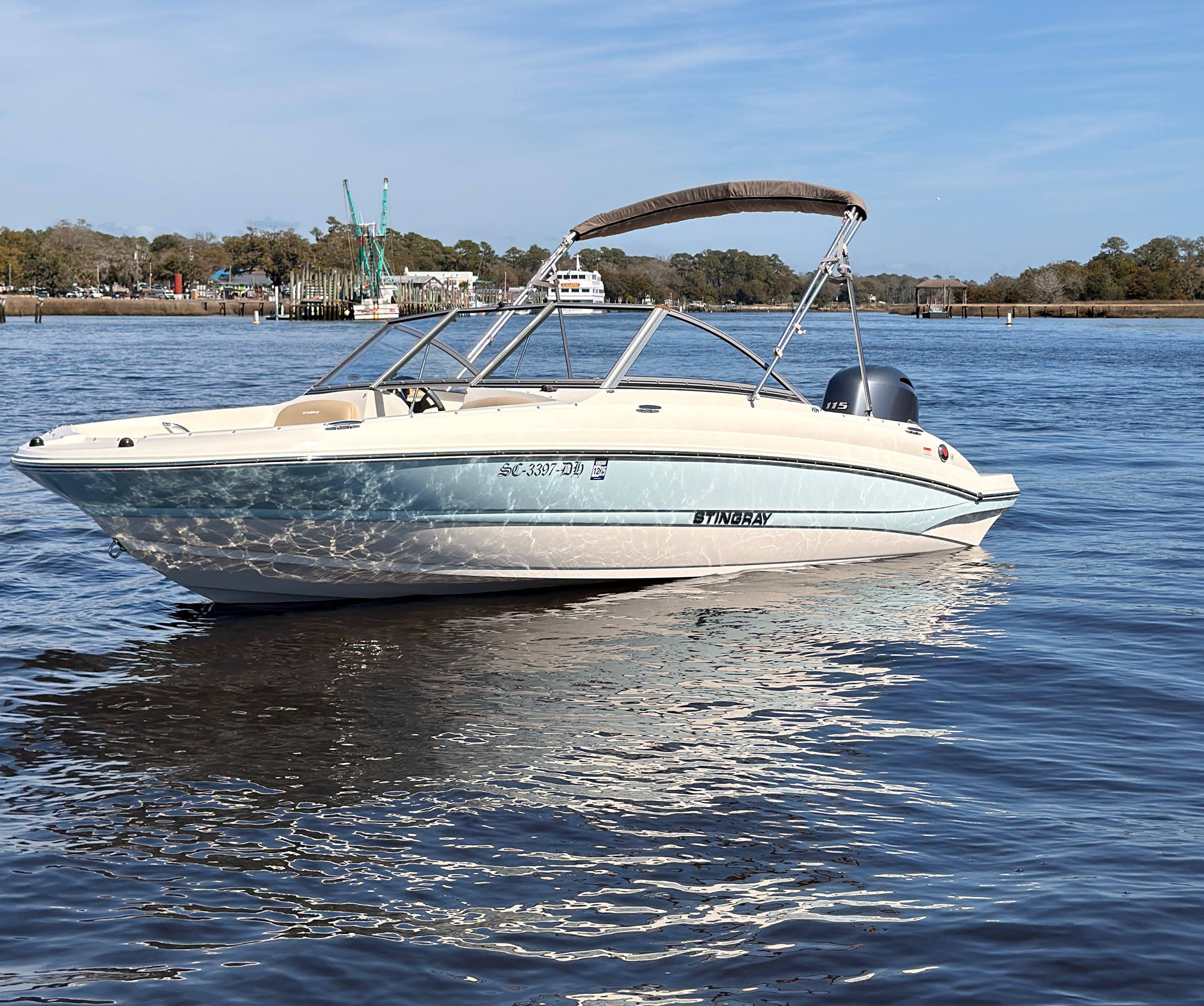 The Stingray 191 DC strikes the perfect balance of performance and practicality. With a low-hour Yamaha 115 HP outboard, this boat is ideal for cruising lakes, rivers, or coastal waters — comfortable enough for family outings, yet sporty enough for tubing and wakeboarding. Its dual console layout offers weather protection and great storage, making it a true all-around performer.