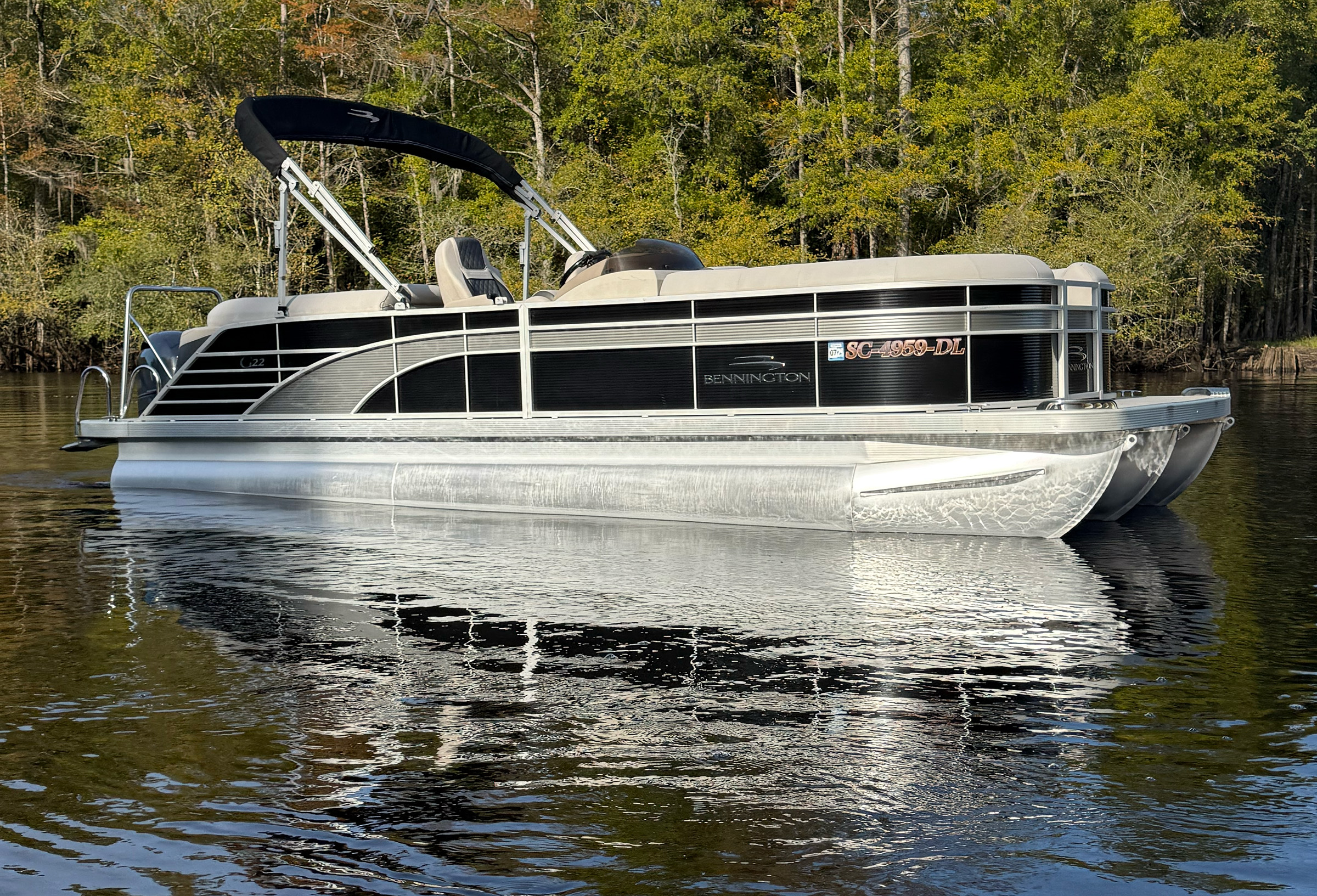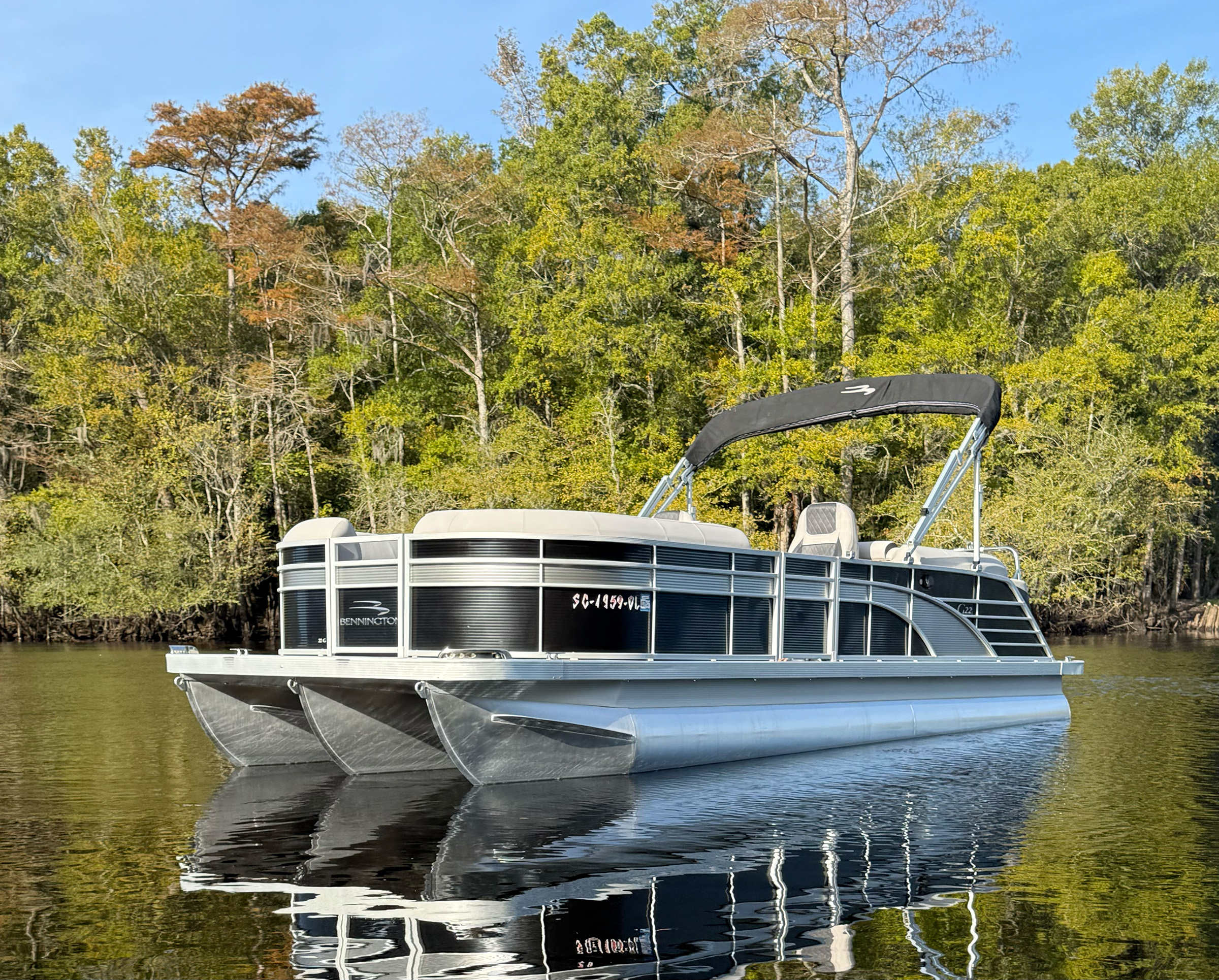 Luxury comfort meets dependable Yamaha performance — this Bennington is ready for the water today!