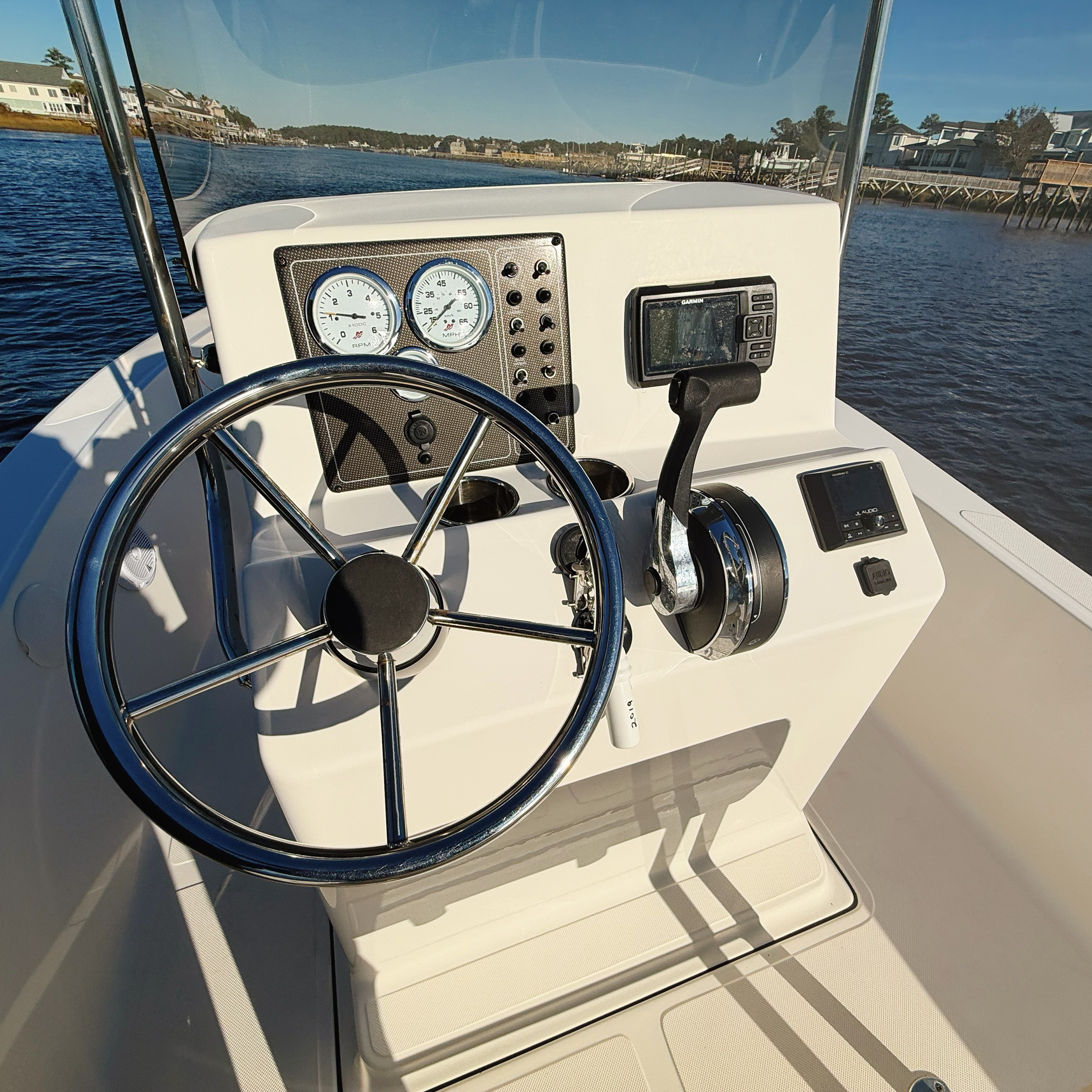 This 2019 Pioneer 175 Bay sport is turn-key ready and loaded with features. Powered by a quiet, fuel-efficient Mercury 115 HP four-stroke with low hours, this versatile center console is perfect for both inshore fishing and family cruising.