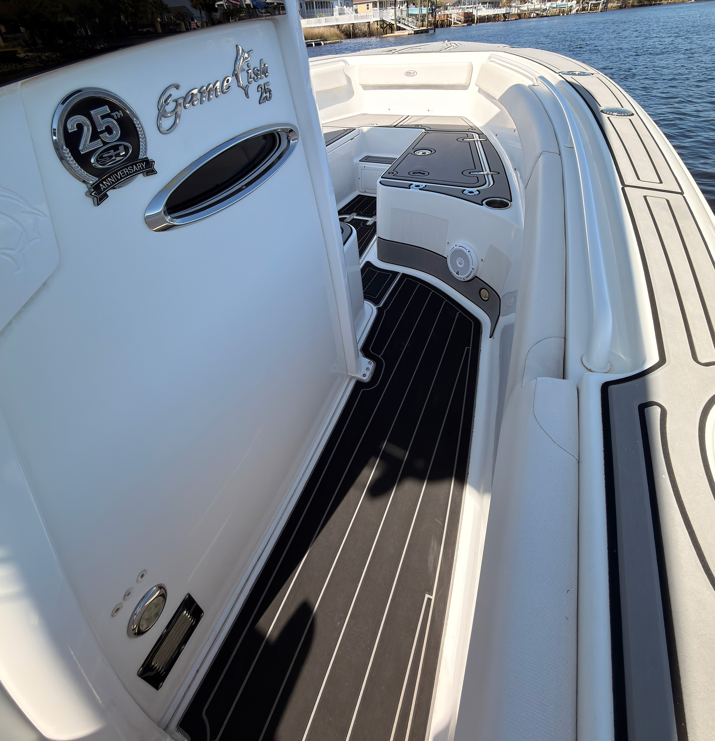 Twin Yamaha power delivers strong acceleration, excellent fuel efficiency, and dependable offshore capability. The Gamefish hull is known for a stable, soft ride in rougher conditions.