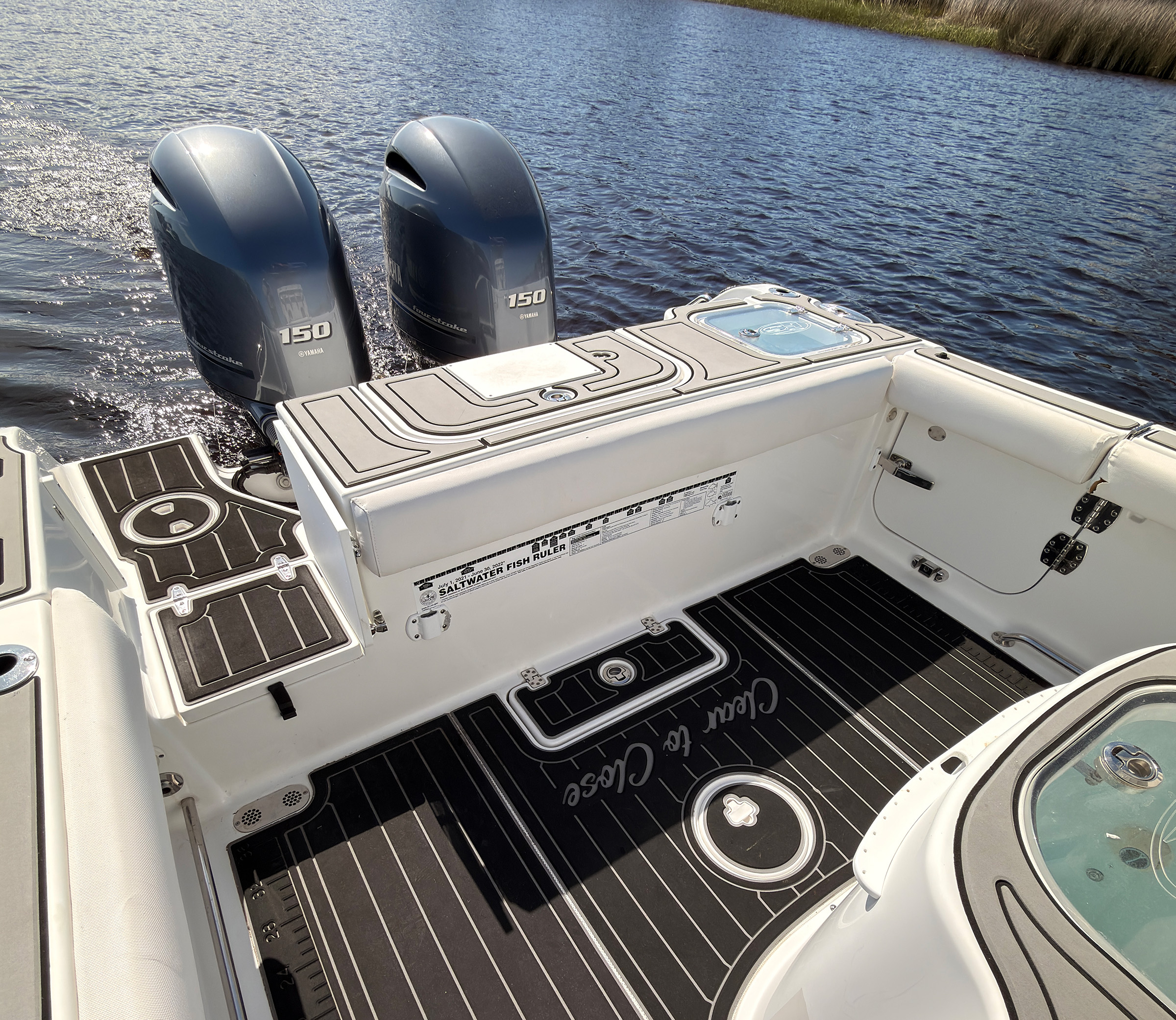 • Dual captain’s chairs + leaning post w/ livewell