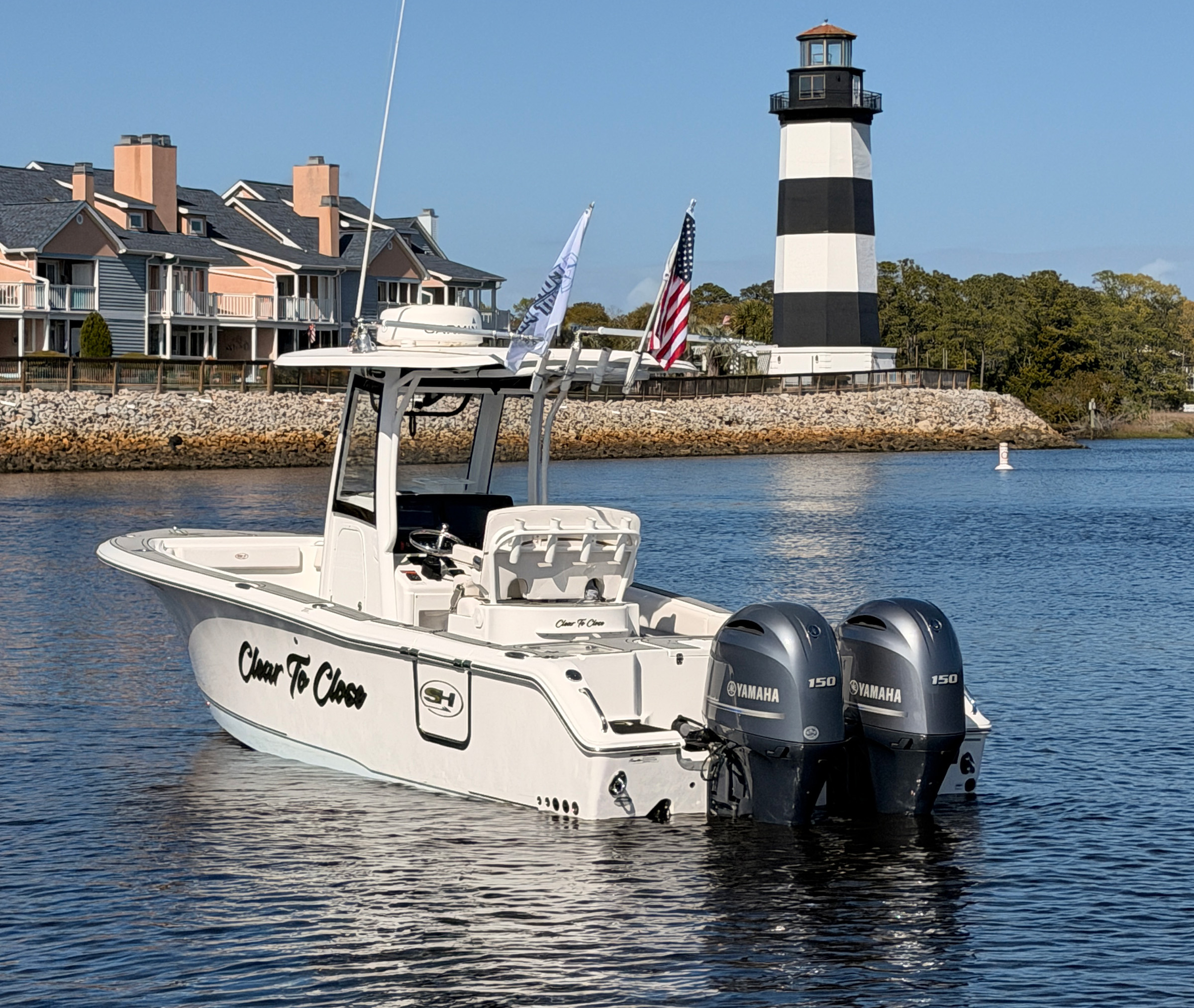 • Deep-V hull = smooth, dry offshore ride